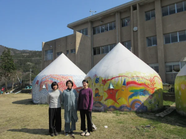 現在、校庭には大学生ボランティアがペイントしたインスタントハウスアートが並んでおり、子どもたちの人気スポットになっています。