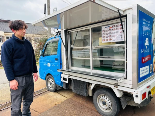 そこで現在、移動販売車で一軒一軒「豆腐、いかがですか?」と御用聞きしながら、地震と豪雨でなくなってしまった奥能登の移動販売車運行エリアを「新たに作ろう」と取り組んでいます。