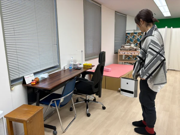 診察台は、段ボールベッドを活用(2025年4月3日現在の様子)。