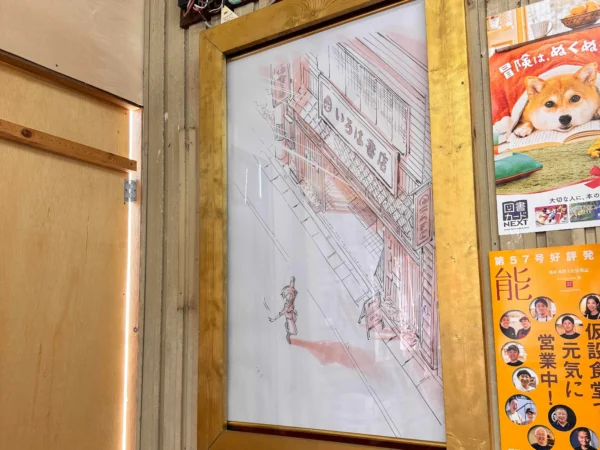 前の建物を再現しないと、震災前の年にコミック『暗号学園のいろは』の作画担当で漫画家の岩崎優次先生が描いてくださったポスターのいろは書店の絵と違っちゃいますしね。