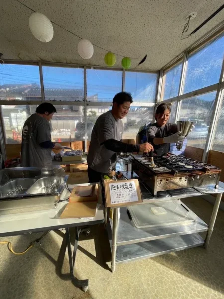 この経験をきっかけに、今度は私たちが、親しくなった支援団体の方と一緒に町野町に炊き出しに出向き、町野町でたい焼きを振るまったのです。