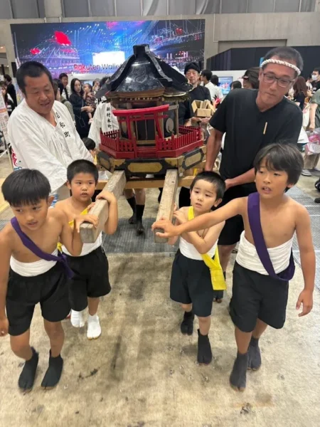 一般社団法人立ち上げ前の2024年8月のことですが、楽天グループ株式会社のイベント「Rakuten Optimism 2024」に招いていただき、東京ビックサイトにみんなで行ってきました。「地域創生エリア」という会場で「あばれ祭り」のパフォーマンスをしたことは、参加した子どもたちにとって忘れられない思い出になるとともに、自分たちの町に誇りを持てる経験になったでしょう。