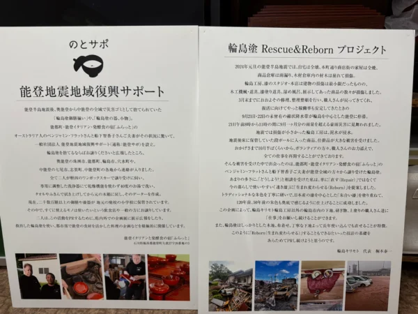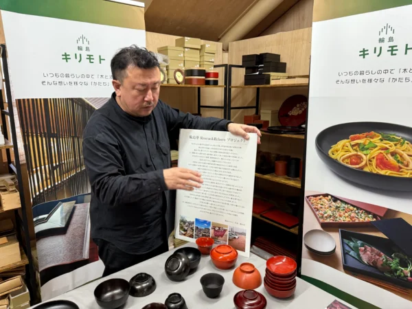 輪島塗のPRや販促のイベントに、2024年は21回、2025年も5月時点で11回参加しました。輪島塗は伝統的な屠蘇器や重箱、飾り棚や屏風、和室の家具や建材、茶道具や文具、そして輪島キリモトのように日常使いの食器など幅広いです。能登半島地震が多くの方の心に刻まれているうちに、輪島塗の奥深さを伝えたいです。また、広報活動は営業活動につながるので、人を確保しつつ仕事も呼び込みたいと思います。