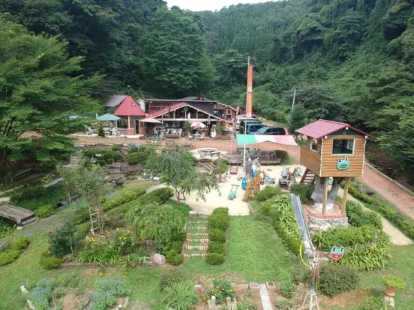 カエルの大合唱が聞こえるこの場所を、「ケロンの小さな村」と名付け2009年から営業しています。