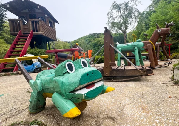 パンを求めて村長の知り合いの親子などが遊びに来ることが増えたため、遊び場を作りはじめました。村内のいたるところにあるカエルのイラストは、村長が描いていますが、同じカエルは一匹もいません。
