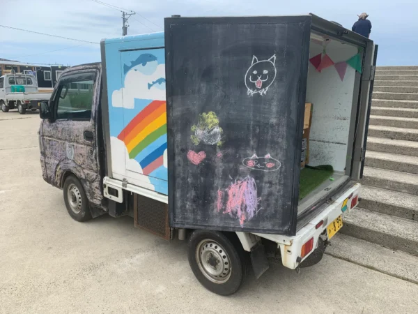 そんなこどもたちの笑顔を支えているのが、CFAの活動の大きな柱である「プレイカー」の存在です。もともとは冷凍車として活躍していた車両が、CFAの手によって、こどもたちの夢を詰め込んだ移動式のあそび場へと生まれ変わりました。
