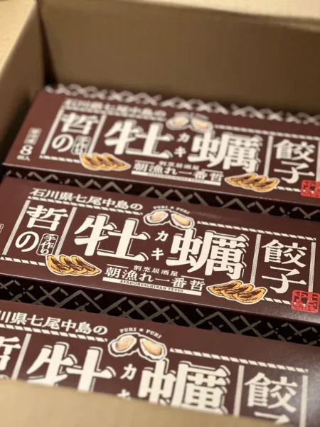 まだ試行錯誤しておりますが、牡蠣餃子に続き、七尾市や能登ならではの食材を使った新たなオリジナル餃子を考えています。フクラギ(イナダ)照焼き餃子や、七尾市に会社と工場のあるスギヨさんの極香り箱というカニカマを使った餃子など、もう何度か試作しました。