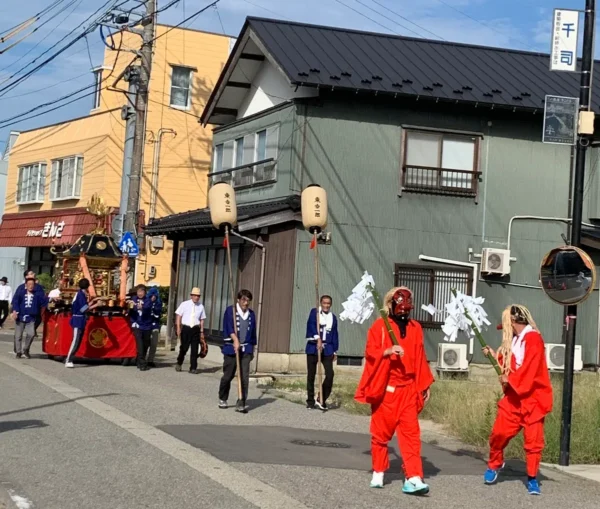 仮設店舗オープン翌日の9月15日は松波神社の秋祭りだったので、町内を神輿が巡行する風景に出会えました。7月のキリコ祭りのような派手さはありませんが、能登の「ヨバレ」文化に従い、天狗様に導かれた一行は松波酒造になだれ込んでお酒を所望。それはどこか懐かしくホッとする風景で、酒蔵が町の賑わいと共にある存在であることを再確認しました。