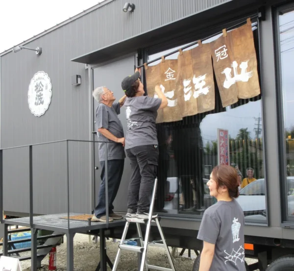 松波酒造の取材を続けているライターの井上です。Vol.2でご紹介したトレーラーハウスを活用した仮設店舗がオープンしました。オープニングに駆けつけ、社長・金七政彦(きんしち・まさひこ)さん、蔵人・美貴子さん、若女将・聖子さんに、ここに至るまでの思いやここから目指すものなどを伺ったので、第3弾はライター目線の記事として公開します。