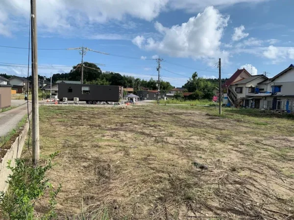 松波酒造の敷地は、酒蔵・店舗・事務所・自宅などを含め約1,000坪。酒蔵や自宅の再建はまだまだ先のことなので、トレーラーハウスを設置した一部を除いて敷地は公費解体されたままの状態です。