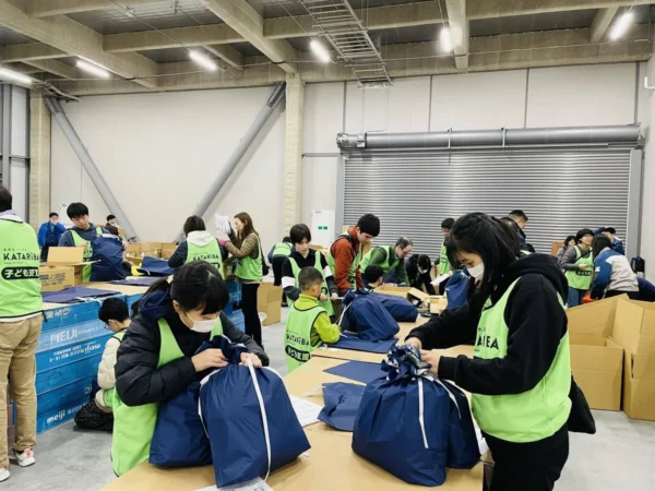 例えば、輪島市の中学生は白山市(はくさんし)に一斉集団避難して、授業を継続しました。しかし家があるエリアは雪が積もらないという子も多く、長靴を持っていなかったり、衣類や勉強道具を家から取り出せなかったりして、真冬なのに半袖を着ている子も目に付きました。そこで、輪島市、珠洲市、穴水町、能登町の小・中・高の生徒約1,500人一人ひとりに洋服と靴のサイズをヒアリングして、それぞれに合った衣類や学用品などをセットして届けました。