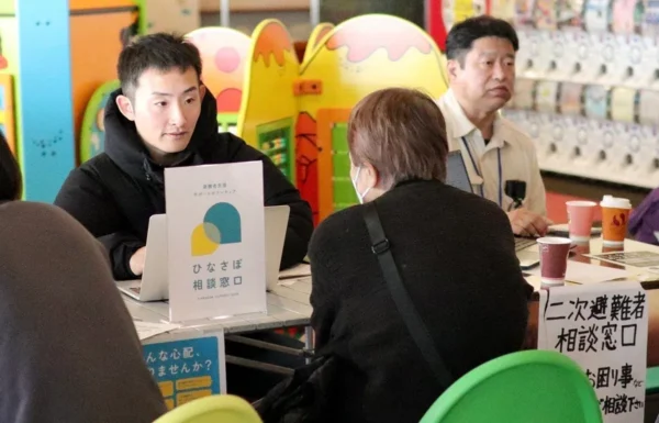 相談の時間は1回2時間ぐらいと決めていましたが、周辺の他の旅館でも絶対同じように困っている避難者がいるだろうと聞いてまわってみたら、「じゃあお願いします」と言われ、窓口はどんどん広がっていきました。そんな活動をSNSで発信すると、興味を持って実際に窓口を見に来てくれる方も現れました。それが坂井さんや遠藤さんたちです。