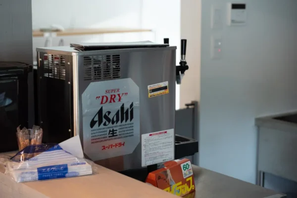 大事にしたのは、“みんなの居酒屋”。酒があるとみんなが集まる。宴会ができるように、ビールサーバーやスチームコンベクションオーブンも導入しました。ふらっと立ち寄りやすいように、場所は仮設住宅の隣。敷地内には、毎年花見をしてきた桜の木もある。建物の中から桜が眺められて、すぐに外に出られるように縁側も設計されています。