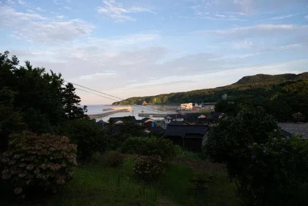 「狼煙のみんなの家」のすぐそばにある禄剛埼(ろっこうざき)灯台は、奥能登の最先端で、夕日も朝日も眺められる人気の観光スポット。「灯台まで登る途中で下を眺めると、黒瓦の屋根が光って美しい」と糸矢さんが教えてくださった夕景を見に、取材後に階段を登り灯台を目指しました。