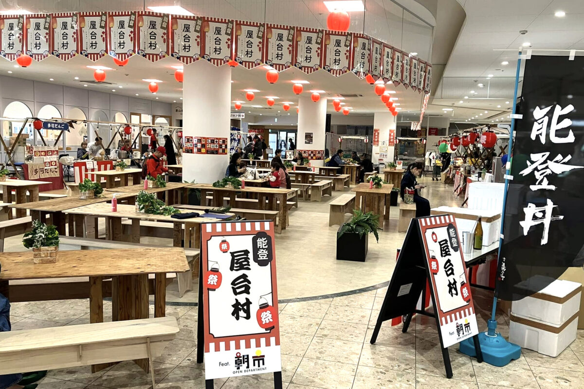 七尾市内では地震被害と断水で営業できなくなった飲食店が多くあったため、ナナイベ合同会社でパトリア1階の広場に被災した飲食店が設備を共有しながら営業できる場をつくり、2024年2月1日から3日までイベント形式で「能登屋台村」を開催しました。