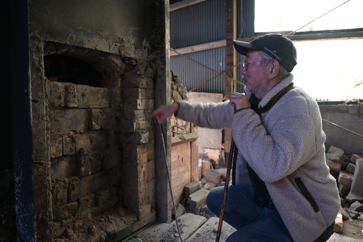 珠洲焼も震災で大きな影響を受けました。地震前は約20軒の窯で40人ほどの作家・職人が製作していましたが、すべての窯が被災し生産が一時ストップしました。無事だった窯は無かったのではないでしょうか。レンガを積み上げて作ってある窯は揺れに弱く、地震では崩れやすいんです。