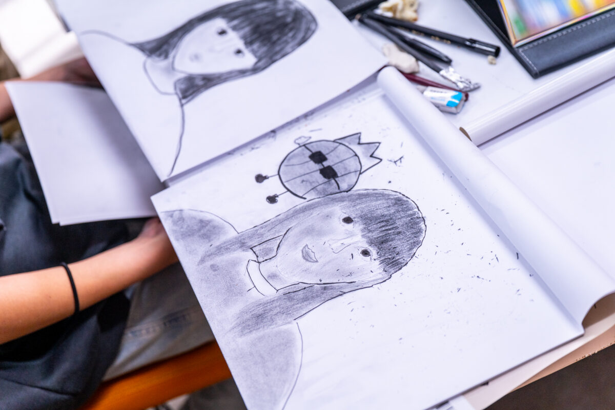 子どもたちの絵には、また別の変化があります。二回目・二枚目のほうが、画用紙の中で顔が大きくなっていく傾向がある。少し余裕が出てきたのか、自己肯定感が芽吹いてきたのか。言葉にするのは難しいけれど、ほとんどの絵が、そうなっていきます。